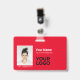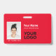 All Red Employee Photo Bar or Qr Code Logo ID Badge