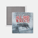 A magnet with the audio book cover of Josh Lanyon's All She Wrote (Holmes & Moriarity series, book 2).