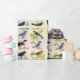 All sorts of birds in all sorts of colours on wrapping paper - great for birthdays.  The birds are blue, black, yellow, red, and white on coloured backgrounds merged into a patchwork quilt image.