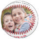 Add your personalised HAPPY FATHER'S DAY message with two photos on this ALL STAR DAD designed keepsake softball. All text is editable to change to fit your needs. PHOTO TIP: For fastest/best results, choose a photo with the subject in the middle with lots of space around the subject and/or pre-crop it to a long, narrow rectangle with plenty of space around the subject BEFORE uploading for a better fit in the photo frame wrapped around the ball. Contact the designer via Zazzle Chat or makeitaboutyoustore@gmail.com if you'd like this design modified.
