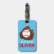 A fun personalised boy's baseball and mit luggage tag for his backpack. Featuring a brown glove with a red and white baseball (add your child's name & position). Athletic sports typography. Ideal for Back-To-School and Baseball Activities. You can change the colours/font styles.