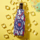 Bottle cooler with red and white pickleball players on blue, starry background. Perfect as a gift for a American pickleball player. Customisable name and initial