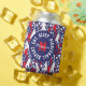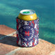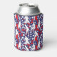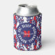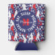 Can cooler with red and white pickleball players on blue, starry background. Perfect as a gift for a American pickleball player. Customisable name and initial