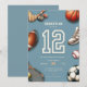 Get ready to celebrate with our all star sports 12th birthday invitation, perfect for your little All-Star! Whether it's for a game sport party or a special teens birthday invite, this sports-themed printable is sure to excite any boy who loves sports. Let's have a ball and make this all sports birthday celebration one to remember! Customize text, color, fonts like you want, just click <<personalize this design>>.