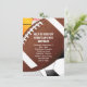 The design features a football in centre with a basketball, baseball, golf ball and soccer ball in the background. The announcement is in a collegiate style font. Personalise this invitation for a sports or football theme party. There's plenty of space on the back if you need to provide other information such as directions, signing a liability waiver or a reminder to bring socks.