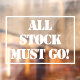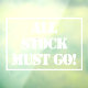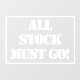 This "All Stock Must Go" Window Cling Graphic is bold enough to announce your shop sale. White on clear background.