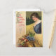 A vintage illustration Thanksgiving postcard featuring a woman and a cornucopia of fruit with the text "All Thanksgiving Bounty Be Thine."