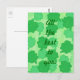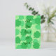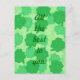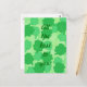 Painting of a collage of shamrocks, four leaf clovers, in various shades of green, with the message, All the best to you, printed on postcards. Can be customised with a different message, and/or font.