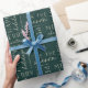 Merry everything! Share ALL the holiday wishes with this unique wrapping paper featuring your family name in a repeating pattern of Merry Christmas, Tis the Season, Happy Holidays, and Peace on Earth on a rich forest green background.