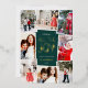 Fun and festive holiday photo card in a modern jewel tone colorway features eight photos arranged in a collage layout. "Wishing you all the joy" appears in the centre in gold foil lettering on a hunter green background accented with stars. Personalise with your personal greeting, your family name, and the year.