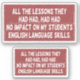All the lessons they had had had had no impact on my students English language skills. A funny typography design for an English teacher. The word had is repeated 4 times in the sentence yet the sentence still makes sense. This reflects the difficulty of learning the English language.