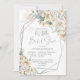 All white bridal shower silver frame floral invitation