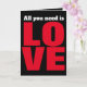 A simple graphic design spells out " All you need is LOVE". This red, white and black typographical card is perfect for most occasions. Inside the card there is an area for you to add your own message