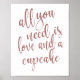 An elegant cutting edge wedding sign, features the text "All you need is love and a cupcake" in a extroverted script font, the glitter texture adds a festive and glamorous touch. The background color can personalized according to your needs and preferences, please contact me if you have any special request.