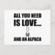All You Need Is Love And An Alpaca Funny Postcard