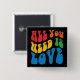 Make love, not war... this vintage-look button has a groovy font and groovy colours with wavy text on a black background.