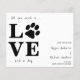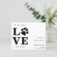 All You Need Is Love And A Dog! Include your best dog in your wedding announcement with this super cute 'LOVE' with a paw print pet dog save the date cards. Customise with your names, date, and wedding location. This dog wedding save the date announcement will be a hit with your family and friends. COPYRIGHT © 2020 Judy Burrows, Black Dog Art - All Rights Reserved. All You Need Is Love Dog Save The Date Postcard