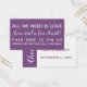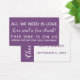 "All We Need is Love. Love and a Free Drink! This one is on us. Redeem for one free adult beverage." Each of the four lines of text were added separately and can be fully edited, whether you want to change the wording, size, font, color or position. All words on the front are white over an editable purple background. // On the back, the "fancy type" was used to render the word "Cheers!" which was rotated and placed over the purple band along the left side. The other type was handled in reverse: your names and dates will appear in the purple text over a white background. You can change any of the colors if you'd like a different palette. // Please don't hesitate to reach out with any special requests or if you need help with customizing assistance. // 9 // Designed by Melody Watson for Paper Muserie.
