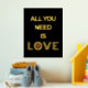 "ALL YOU NEED IS LOVE" quote and red heart black print.