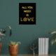 "ALL YOU NEED IS LOVE" quote and red heart black Foil Prints
