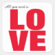 This sticker features the word LOVE is in big, bold red letters. At the top of the, in a black script font, are the words "All You Need Is".