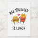 All you need is lunch. What time is lunch? It's lunch time. Funny hamburger and french fries in love. A perfect match for kids as well as for adults.