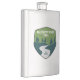 The product is a good size and came exactly as it was pictured.  The lid is not attached to the flask, which could be dangerous on drunken nights... The print came out surprisingly well and looks very sharp.  Would definitely recommend.