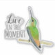 Cute "Live in the moment" sticker featuring a female Allen's Hummingbird.