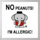 An elephant with text that reads "NO Peanuts! I'm Allergic!" on peanut allergy awareness T-shirts, hoodies, buttons, stickers, keychains, cards, mugs, and other peanut allergy awareness apparel and gifts. Keep your child safer by letting everyone know he has a peanut allergy!