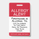 Allergy Alert for Medical Emergency Contact Info ID Badge