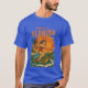 This kitschy throwback beach art is 'only in Florida' energy! A wild pin-up catches a wave as she rides an alligator like a surfboard. The surf beach at sunset scene has bold orange and red colors, complete with palm trees blowing in the tropical breeze. Add a little Florida chaos to your outfit with this fun t-shirt. | Vivid printing is recommended for non-white garments.