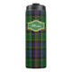 Colourful custom Thermal Tumbler done in the classic green, blue, mauve, black, yellow and white clan Allison tartan plaid pattern. A decorative green text plaque, has custom white text ready to personalise. Great gift idea.