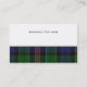 Stylish plaid business card done in the traditional Allison tartan pattern. The front of the card has a black edged semi transparent white band, across the middle of the card, with custom black text. The back of the card is done in white, with a strip of plaid at the bottom, and black text on the white portion. Personalise all the text to suit your needs. Handsome and professional looking business card.