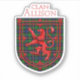 Allison Scottish tartan plaid pattern design for the Allison Clan Family underneath the red Lion Rampant Shield of Scotland.