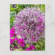 Now that the summer is here it is wonderful to see the gardens full of colorful flowers once more. In this marvellous floral photo design a glorious purple allium is in full bloom surround by vivid shocking pink daisies.