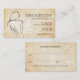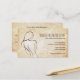 A figure of a woman done in smooth curves stands out on this business card. This would make a great card for a skincare salon, massage therapist, anti-aging centre or even a plastic surgeon's office. The parchment background is overprinted with soft swirls and leaves. Add appointment information on the reverse. Available with matching products.