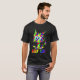 I give wanted to give this a 4 instead of a 5 because these Basic DARK T0shirts run unexpectedly SLIM or Narrow. Which is great if you do not have a potbelly, but I have a paunch. It isn't the shirt's fault that I've got a beer belly. The design and shirt itself is a quality cotton shirt. The color is more of a deep purple, but still a very pretty color. The Basic DARK T-shirts run a bit SLIMMER than the Basic Ts. The neck is a fraction narrower (or seems to be narrower) also. I'm a paunchy middle-aged woman and my neck is 12 inches (31cm) thick and the neckline fell about the same as in the photo of the man, and I had the desire to tug it a bit. So if you're a thick necked man or like loose shirts, be aware these are slimmer shirts. Once I get rid of my lockdown paunch it'll look great. The shirt washed well in cold water with no apparent bleeding. We don't have a dryer, so it hung dry. Did not shrink. Love the colors and the design. The design looks smaller on my shirt than it does on the model on-line. But still, it looks good on the shirt. The printing looks as it does on the model, just the size seems fractionally smaller. Washed garment in cold water, hung dry and design appeared unaffected.
