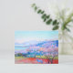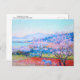 A postcard with the fine art painting by the Belgian Neo-Impressionist artist Theo van Rysselberghe (1862-1926), The Almond Flowers (1918). A landscape with a blooming almond tree and a farmer in the fields in the pointillist style.