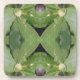 The original artwork on this Coaster was made from an original photograph by HomeWare of a branch of an almond tree. The tree is in sunlight and shadow, and the photo shows the almond hulls up close, as they emerge from the centre of a leaf cluster. The photo was then repeated to form the overall pattern. The natural colours of the nuts and leaves make a beautiful, green design.