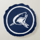 Almost Navy blue wGreat white shark nautical Round Cushion