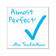 This inspiring rubber stamp design features the encouraging message "Almost Perfect!" and a custom teacher's name. It could be used by a school teacher, educator, instructor, or tutor when grading student work, to indicate that a student has done an exceptional job.