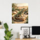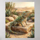 A striking aloe lizard basks on warm stone in a radiant desert oasis where reptile energy meets botanical beauty. Realistic lizard anatomy blends with aloe leaves, succulent textures, thorned edges, and layered green detailing across the spine, tail, and crest. Sunlit rocks, sandy dunes, flowering succulents, drifting heat haze, and golden light create a vivid cinematic setting full of warmth and texture. This premium fantasy wildlife design adds bold character to offices, bathrooms, patios, or gift collections. Perfect for lizard lovers, desert decor fans, and modern nature styling.