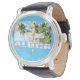 Aloha ! Dream Landscape with a girl inviting us to surfing and have fun, sport, in full freedom.