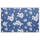 Shows a seamless classic Hawaiian Aloha hibiscus flower pattern. The flowers are white, and the background is blue.