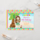 Aloha Cute Brunette Girl Birthday Party. It has a pretty multi coloured stripe background. The words can be changed to your own details