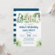 Aloha Flamingo Tropical Navy Blue Luau Birthday Invitation