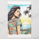 A wonderful invitation, with a smiling girl, to enter a dreamy, colourful and bright nature. A window on a wonderful landscape.