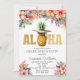 The playful design combines the Hawaiian "aloha" beach theme with the celebratory graduation motif for a fun and cheerful announcement. The pineapple graduate graphic provides a cute, lighthearted focal point surrounded by the lush greenery and bold blooms. Perfect for celebrating a high school or college graduation with a luau or island-inspired pool party vibe. The bright colours and tropical florals create an eye-catching, summer-ready design.