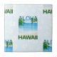 Aloha Hawaii Island beach and palm trees with hibiscus floral pattern.
