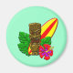 Aloha! Hangloose this Summer and get ready for your next surfing vacation. Tiki, hibiscus flower and surf board.